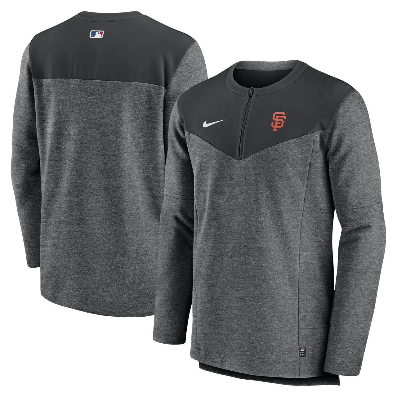 The San Francisco Giants Authentic Collection Game Time top from Nike is equipped for inclement conditions with water-resistant fabric and sweat-wicking Dri-FIT technology. It also features a four-way stretch design for extra flexibility and a droptail hem that helps provide proper coverage as you move around in this San Francisco Giants half-zip.